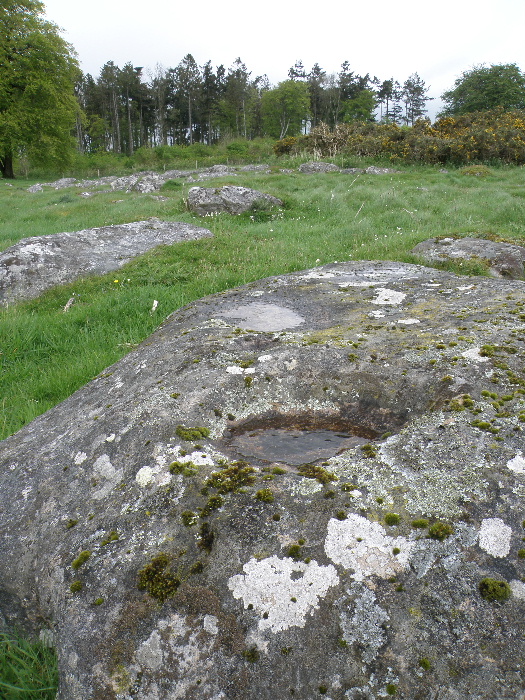 Here’s the archaeological background. During the 1970s Chris Gingell (1980, 1992) carried out fieldwork across parts of the Marlborough Downs. At Burderop Down, the excavations revealed spreads of sarsen stone which were interpreted as working floors; the waste left over from the production of saddle querns in the later Bronze Age. Sarsen boulders cleared from the surrounding fields were gathered together and shaped, by knapping, to make the querns. The querns, “so common on Wessex sites”, were then distributed around the countryside (Gingell 1980, 215).
