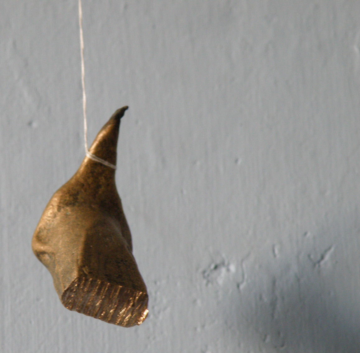 The sword still had its pouring cup attached, as well as flash and casting marks. The sword was cast vertically, through the hilt. Not being a proficient Bronze Age metal-worker, I used a hacksaw to remove the pouring cup and a file to remove the flash, followed by some simple polishing to start to bring out the shine of the blade. There’s a great deal more to do, to do the job properly.