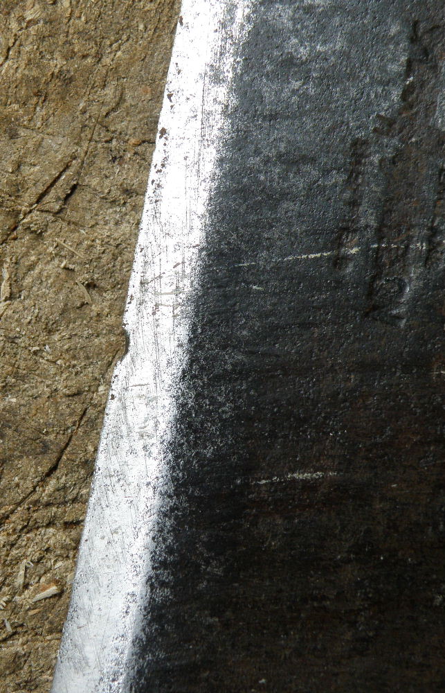 Secondly, you need to be able to identify edge damage. This could be difficult if the metal is corroded following thousands of years buried under the ground. Or the object could have been damaged after it was buried, for example if hit by a plough share. Some imperfections, which could leave very characteristic marks, are nevertheless very difficult to see on the edge itself – like on my spoon knife, whose faults cannot be seen with the naked eye but are very obvious in the wood.